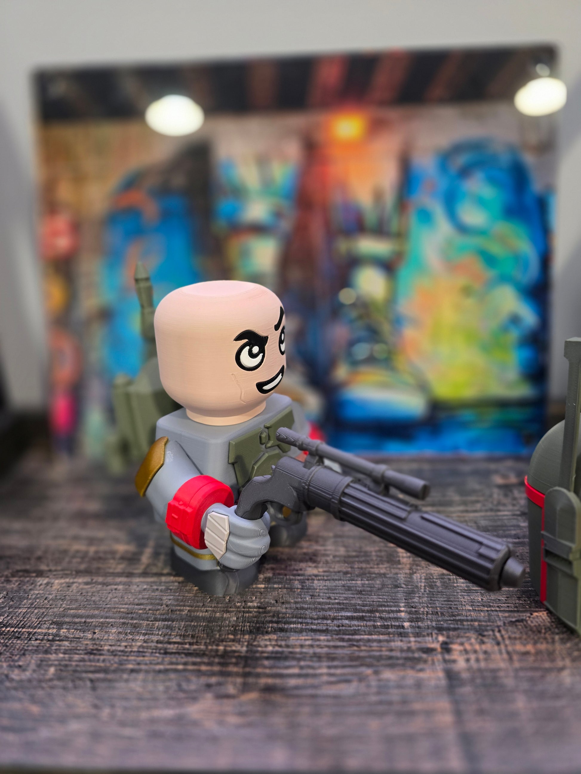 Bring the legendary bounty hunter to life with this chunky 3D printed Boba Fett figure. Crafted with bold, substantial proportions, this Star Wars collectible captures the iconic armor and silhouette of the galaxy's most feared mercenary. Perfect for display on shelves, desks, or as a standout addition to any Star Wars collection. The sturdy 3D-printed construction ensures durability while maintaining impressive detail. Whether you're a devoted fan or a collector seeking something distinctive, this chunky Boba Fett delivers character and presence that commands attention.