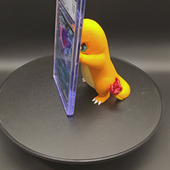 Bring your Pokémon collection to life with this charming Charmander display figurine. Expertly crafted through 3D printing, this mini "Mander" piece doubles as a functional PSA card holder, perfect for showcasing your graded cards alongside your favorite character. Made from durable PLA material, each print may display subtle layer lines and minor color variations, adding to its handcrafted appeal. Keep away from extreme heat and small children. Display your passion for Pokémon in style.