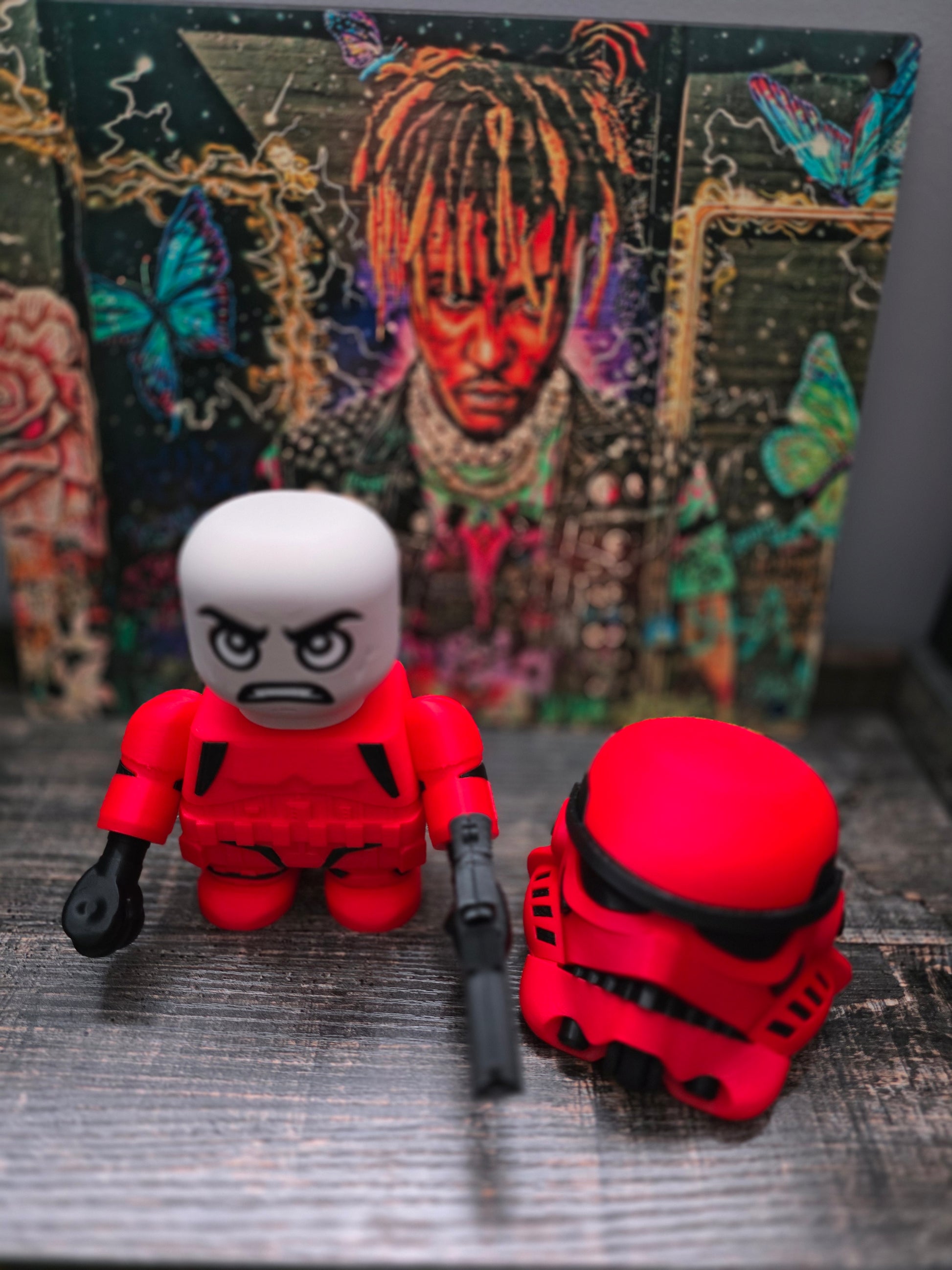 Unleash your inner rebel with this bold StormChunker figure! Standing 6.75" tall, this Star Wars inspired 3D printed collectible features a removable helmet and blaster for customizable display options. The perfect statement piece for fans who dare to defy the Empire's traditional white armor. Makes an unforgettable gift for any Star Wars enthusiast ready to join the galactic resistance.